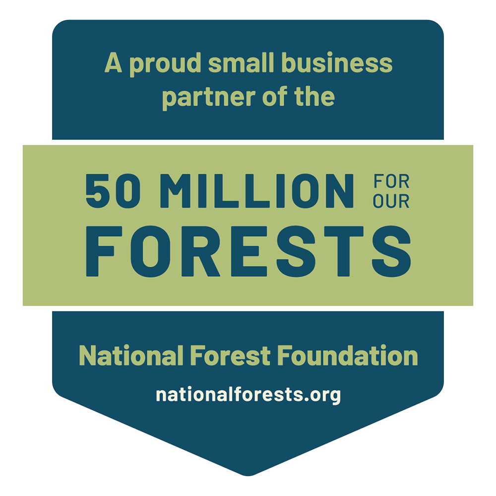 For every sale we make we donate a dollar to the National Forestry Foundation. We aim to promote sustainable practices by doing more with less, recycling what we can, and replacing what we take.